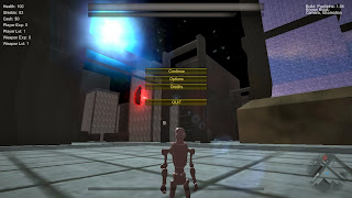 As you can probably see, I've made good progress on getting the functions behind the hud working to the point where I just need to replace the text with gui sprites, and I even have an aimer in there somewhere... And the character is coming along well.